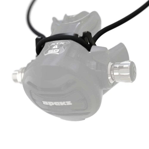 The Apeks bungee connector system has been designed to be a neat storage solution for your back up regulator and can be configured to your personal preference. The system also has a lock out feature for retaining a regulator in the mouth of an unconscious diver during a rescue situation.